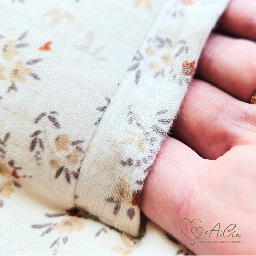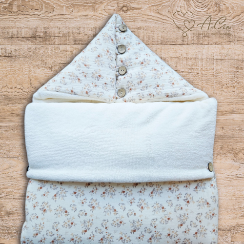 Chancelière bébé artisanale en tissu Charme d’Antan avec doublure bambou écru.