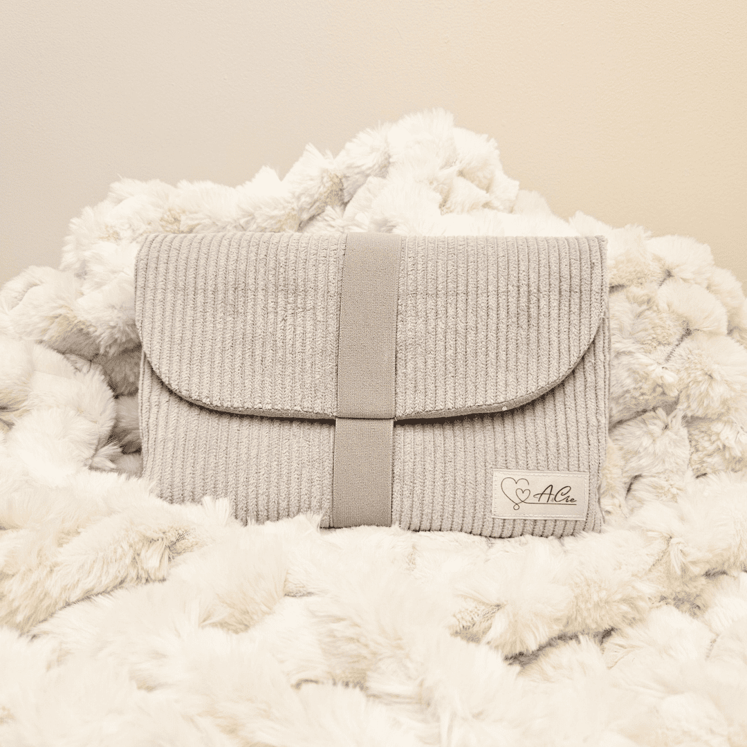 La pochette bébé velours Petit Troupeau de Rêves organise les essentiels de bébé avec élégance et praticité. Confectionnée à la main avec des tissus certifiés respectueux de la peau sensible, elle accompagne toutes les sorties : maternité, voyage ou à la maison.