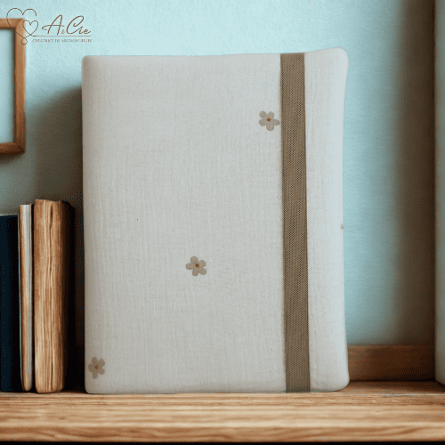 Protège carnet de santé bébé Bouquet de Dodo 🌸 — pratique et élégant en double gaze blanc cassé avec petites fleurs beige en rondeur, idéal dès la naissance.